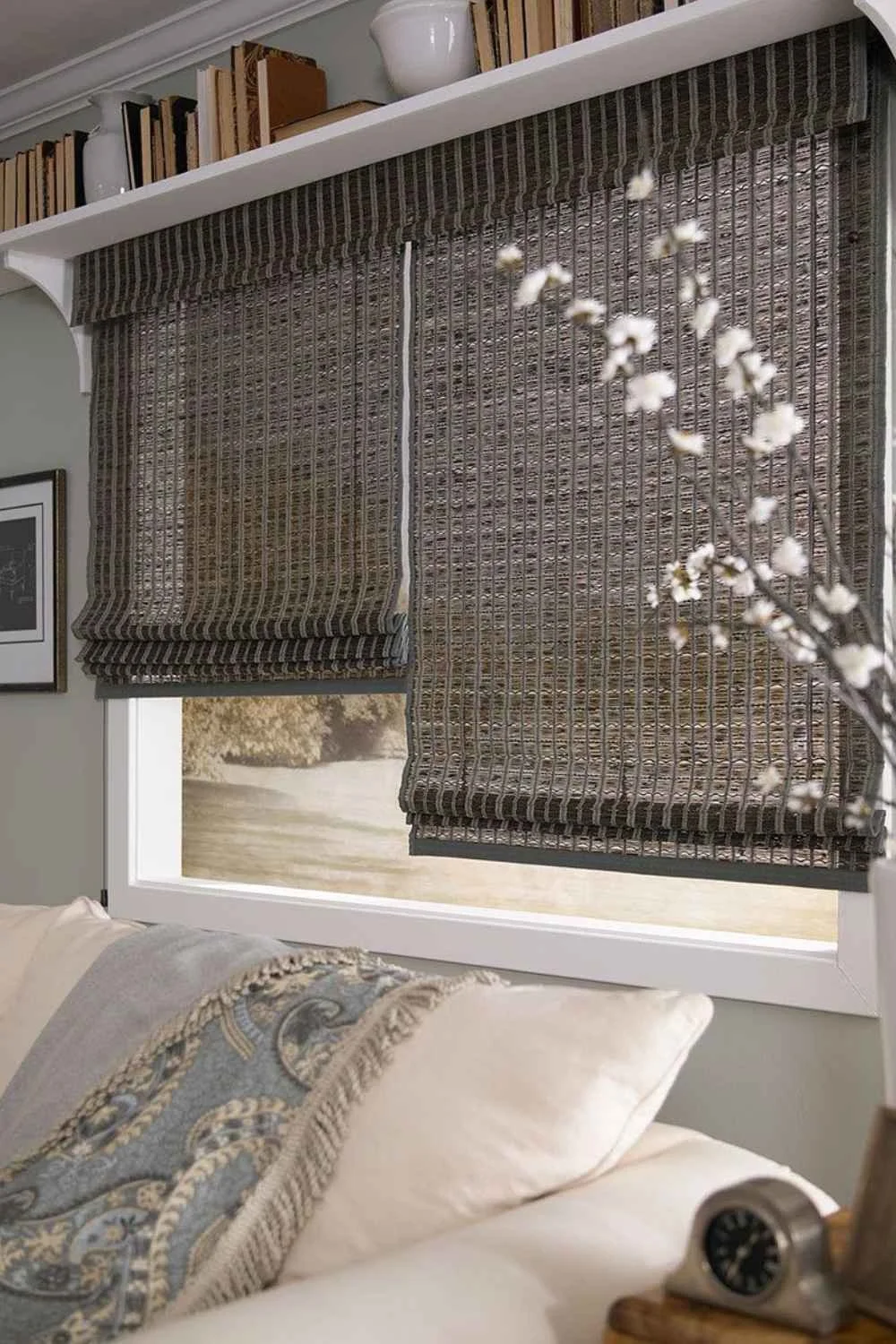 Light filtering woven wood shades are a beautiful addition to any room. Photography courtesy of Lafayette Interior Fashions